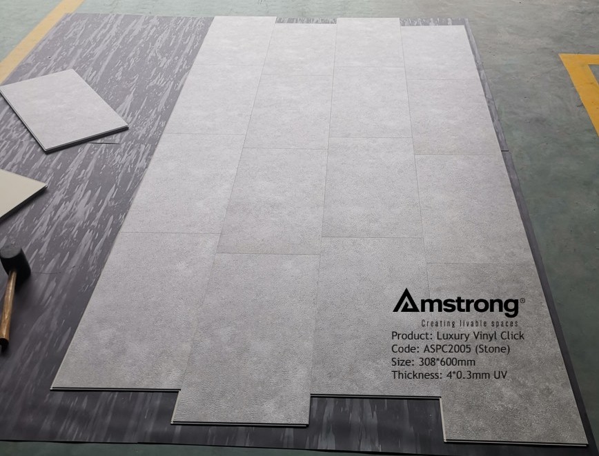 Sàn Nhựa Vinyl hèm khóa giả đá Amstrong là vật liệu lót sàn thông minh làm bằng nhựa nguyên sinh PVC + Bột đá với bề mặt phủ một lớp UV Coating dày 0.3mm đáp ứng đầy đủ các yêu cầu tiêu chuẩn về Chất Lượng Châu Âu, Mỹ, Châu Á..., được dùng để thay thế các vật liệu lót sàn truyền thống như gạch men, sàn gỗ, đá...